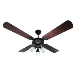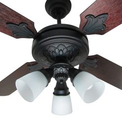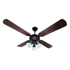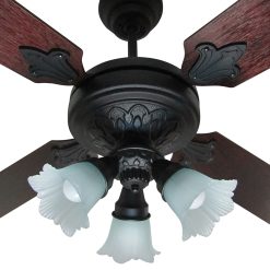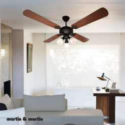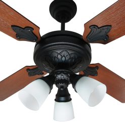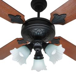 Ventilador de Techo Laurence Negro con Araña Fundición con Tulipa Rama y Palas de Madera Reversibles tonos Caoba y Wengue